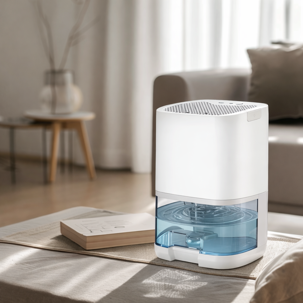 Designed to quietly reduce excess moisture in small living spaces, this compact dehumidifier helps create a healthier and more comfortable home — without bulky machines, loud noise, or complicated settings.